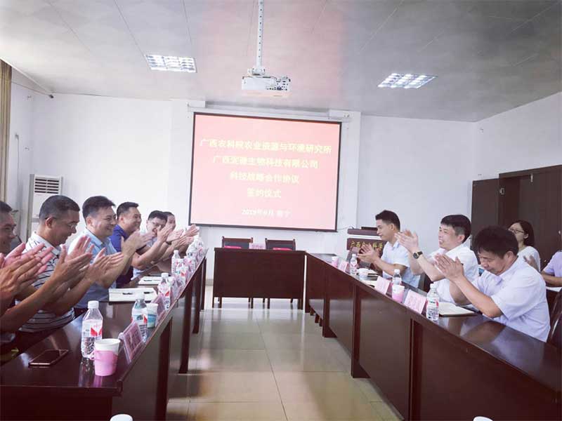 2019年9月25日广西省农科院正式与我们的广西泥微生物科技有限公司正式签约合作。主要开展泥微饲料、生物有机肥、生态种植和土地资源修复领域的工作。